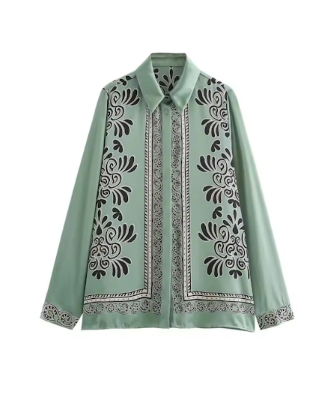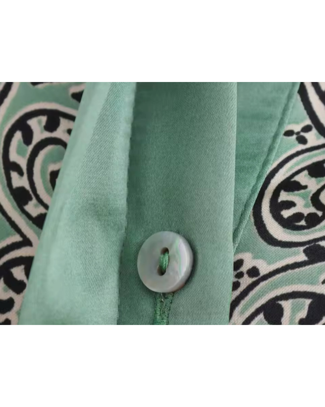 - Farben: Hellgrün mit kontrastierendem, schwarzem Blumenmuster