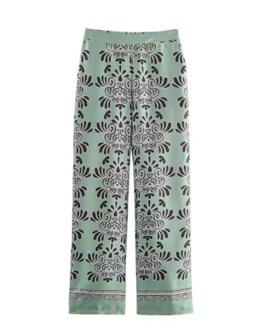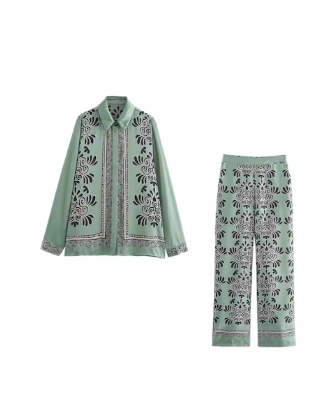 Zweiteiliges Damen-Set mit floralen Details – Hellgrün & Schwarz | Stilvoll & Bequem