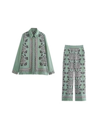 Bringe frischen Wind in deine Garderobe mit diesem eleganten zweiteiligen Damen-Set aus hochwertiger Polyester-Mischung. Das hellgrüne Set mit schwarzem Blumenmuster vereint Komfort, Stil und Vielseitigkeit – ideal für modische Frauen, die Wert auf besondere Details legen.