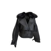 Breathe new life into your wardrobe with this stylish leather jacket with a fur collar . Perfect for those who value elegance and sustainability!
