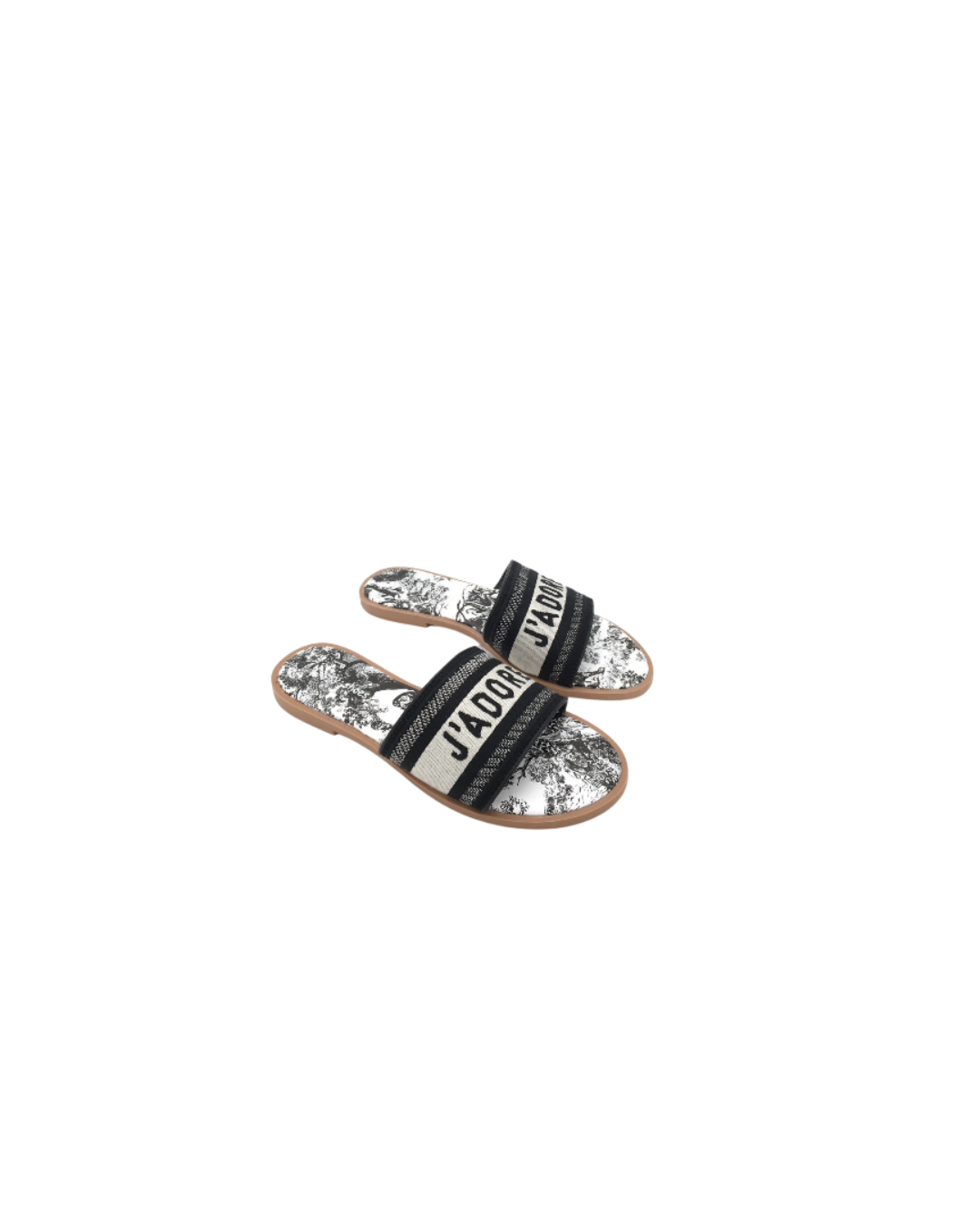 ✔ Design: J’adore-Schriftzug auf den Riemen, dekoratives Muster auf der Innensohle
